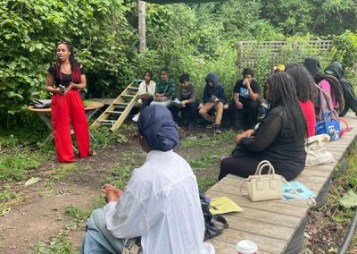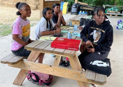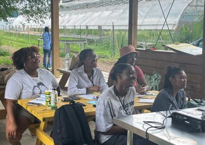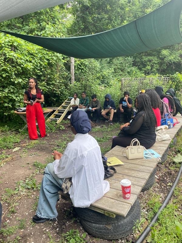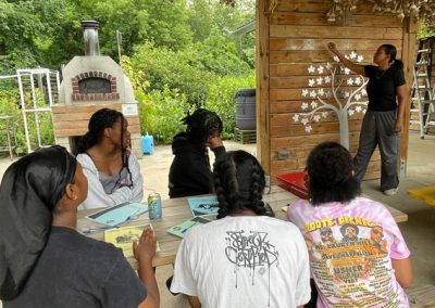 Summer 2024, the AGYU teamed up with Black Creek Community Farm, returning with another iteration of Art on My Mind. Over July, we offered eighteen songwriting and performance workshops facilitated by hip hop powerhouse Dynesti and rising R&B star Kibra, providing twenty nine hours of enriching arts based instruction and mentorship to children and youth from Success Beyond Limits, The Neighbourhood Group, Flaunt It, Firgrove Learning and Innovation Centre, and the Black Creek Community Farm’s Youth Group. A total of 128 children and youth participated in these music education workshops, all conducted in the Farm’s outdoor pavilion space.