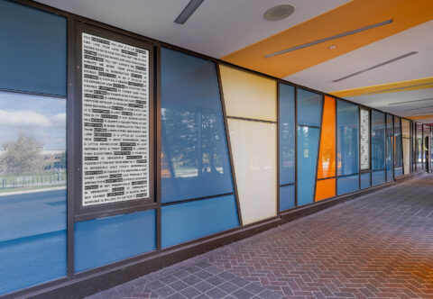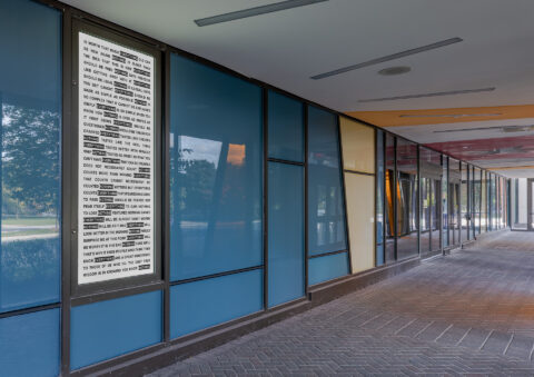 For the Gallery’s three vitrines, we have transcribed the dialogue from this video and her print EN Between Us, presenting Mark’s chain of aphorism across the glass façade of the windows. In this setting, Mark’s collection of sayings capture a melancholy that is not only a reflection of the artist, who in her final year’s became increasingly isolated, but also mirror the language loops of contemporary culture where social media reduces thoughts and experiences to fragments and catchphrases. As passers-by read, they will see themselves reflected in the glass around them, caught—like Mark—between “everything” and “nothing,” suspended at the reductive surface of stereotypes that when combined may offer a more complex glimpse at themselves.