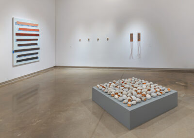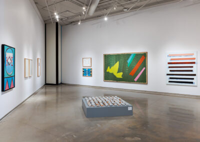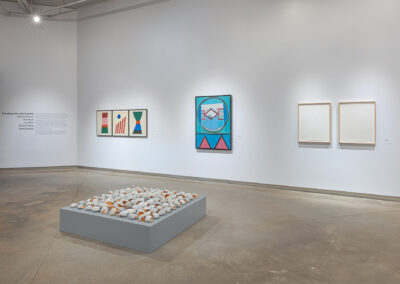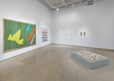 During my tenure as Curator of Collections and Contemporary Art Engagement for The Goldfarb Gallery, Michael Belmore attended one of the first collection tours I led through the gallery’s new Visible Vault. The artist and I subsequently spoke about the throughline of modernist aesthetics in York University Art Collection. In our conversation, Belmore began to share connections and references sparked by seeing Jack Bush’s paintings and prints which reminded him of a particular element in Bob Boyer’s artwork, which led me to bring up a recently acquired painting by Tariku Shiferaw, which led us to the seed for this exhibition. I invited Belmore to engage with the permanent collection and to collaborate on an exhibition that showcases his work in relation to the collection and beyond to artists who have influenced his practice.