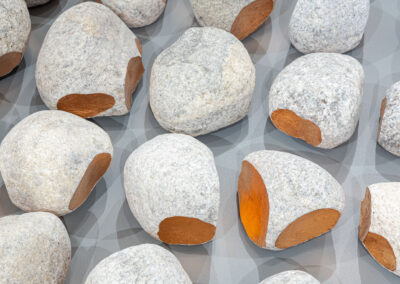 Michael Belmore, Resolve, 2022–ongoing. Stone and copper leaf, variable dimensions. Courtesy the artist.
